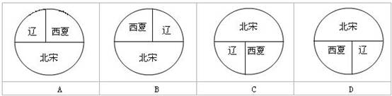 30.图示法是我们学习历史的一种方法。下面对辽、西夏与北宋并立局面示意正确的是