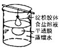 胶粒与溶液中的溶质分离。例:用渗析的方法除去淀粉胶体中的NaCl。 |