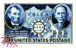 ①邮标上的人物Sun Yat-Sen和Lincoln 分别是