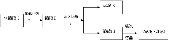 21.(8分) 已知H2O2、KMnO4、NaClO、K2Cr2O7均具有强氧化性。从溶 液中将C u2+、Fe2+、Fe3+沉淀为氢氧化物所需pH值分别为6.4,6.4,3.7。 现有氯化铜晶体(CuCl2·2H2O)中含有FeCl2杂质,为制取纯净的CuCl2·2H2O, 首先将其制成水溶液,然后按下图步骤进行提纯