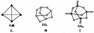 (2)白磷(图乙)是正四面体构型的分子,当与氧气作用形成P4O6时,相当于每两个磷原子之间插入一个氧原子(如图丙)。当形成P4O10时,相当于在P4O6的分子中每个磷原子又以双键结合一个氧原子(如图丁)。