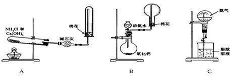 25. 下图中A、B、C分别是某课外活动小组设计的制取氨气并进行喷泉实验的三组装置示意图,制取NH3选用试剂如图所示,回答下列问题: