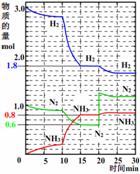 (3) 500℃时,在一密闭容器中,将N2和H2混合,反应过程中N2、H2、NH3物质的量变化如图,反应处于平衡状态的时间是: 。