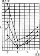 (4)右图中A、B、C三条曲线分别表示③、④、⑤三种元素所在主族元素的气态氢化物的沸点,其中表示元素④所在主族元素气态氢化物沸点的是曲线 ;同一族中第3、4、5周期元素的气态氢化物沸点依次升高,其原因是 ;A、B、C曲线中第2周期元素的气态氢化物的沸点显著高于第3周期元素气态氢化物沸点的原因是 。