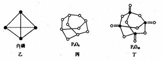 (2)白磷(图乙)是正四面体构型的分子,当与氧气作用形成P4O6时,相当于每两个磷原子之间插入一个氧原子(如图丙)。当形成P4O10时,相当于在P4O6的分子中每个磷原子又以双键结合一个氧原子(如图丁)。