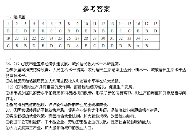 36、(18分)下表为某市5年来城乡居民生活变化情况