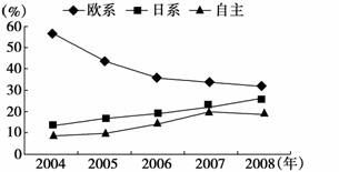 图2 中国国内自主品牌轿车市场与欧、日系车市场份额比较