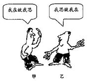 (2)①甲认为“我在故我思”,认为先有物质后有意识,世界的本原是物质,物质决定意识,这正确反映了思维和存在(物质与意识)的关系,这属于唯物主义观点。