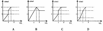 13.向含1 mol HCl和l mol MgSO4的混合溶液加入1 mol·L-1的Ba(OH)2溶液,产生沉淀的物质的量(n)与加入Ba(OH)2溶液体积(V)间的关系图正确的是 ( )