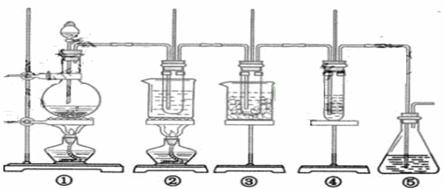 图中: ① 为氯气发生装置;②的试管里盛有15mL30%KOH 溶液.并置于水浴中; ③ 的试管里盛有15mL 8 % NaOH 溶液.并置于冰水浴中; ④ 的试管里加有紫色石蕊试液; ⑤ 为尾气吸收装置。