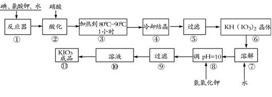 23.(8分)碘酸钾是一种白色结晶粉末,无臭无味,酸性条件下碘酸钾是一种较强的氧化剂,与氢碘酸、二氧化硫等还原性物质作用,被还原为单质碘,在碱性介质中,碘酸钾能被氯气、次氯酸盐等氧化为高碘酸钾。碘酸钾在常温下稳定,加热至560℃开始分解。工业生产碘酸钾的流程如下,在反应器中发生反应的化学方程式为:
