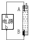 A.电源中a为正极,b为负极 B.电解池中电解液可以是NaOH溶液但不能是NaCl溶液 C.A、B两端都必须使用铁作电极 D.A电极发生的反应为:2H2O + 2e |