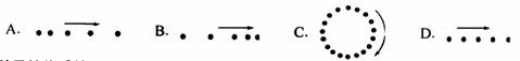14.下列各图都是利用每秒闪光30次的照像装置,拍摄所得的 A、B、C、D四物体运动情形,图中箭号表示运动的方向,那一个物体所到的力是平衡力( )