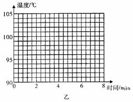 (2)纠正错误后,水的温度随时间变化的数据如下表,在图乙中画出温度随时间变化的图像。(2分)