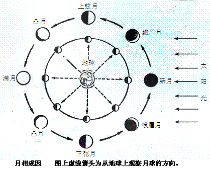 例6 为什么会有月相的变化?月相变化有何规律?对人类有何价值?