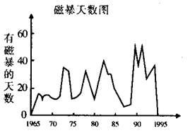 (4)把你画的“太阳黑子变化图”和右图“地球上的磁暴图”进行