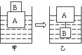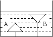 右图所示,两块完全相同的三角形木块A、B用细线固定在水中,A、B所受的浮力分别为FA和FB,它们的大小关系是(