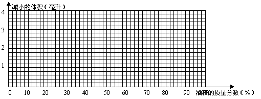 (2)根据表二提供的数据,可以得出:混合液中酒精的质量分数为 %时,混合后体积减小得最明显。