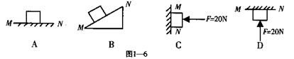 29.木块重5牛,在图1-6所示的四种情况下保持静止,支承面MN受到压力最大的是( )