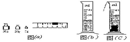 在“测定形状不规则的实心小铁块的密度”的实验中,小明同学的操作过程如图(a)、(b)、(c)所示,当天平平衡时,右盘上的三个砝码质量依次是50g、20g、5g,游码位置如图(a)所示.