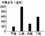 17. 右图是甲、乙、丙、丁四地年降水量统计数据的直方图。