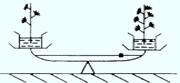 26. 天平的两端托盘上的烧杯内各插有一根树枝,且两根树枝的树叶一多一少,开始时天平两边平衡。(见右图)现将此装置移至阳光下照射,经过一段时间,天平 边将会下降,主要原因是------------------------( )