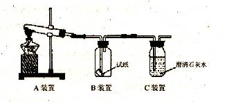 (2)在老师的指导下,同学们把滤纸浸泡在磷钼酸与氯化金钯的黄色混合液中,制成试纸(试纸遇一氧化碳立刻变蓝色,而遇二氧化碳不反应)。按如图装置进行实验,发现B装置中的试纸没有变色,C装置中的澄清石灰水变浑浊。请写出A装置中发生的化学反应方程式 。