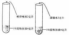 如图所示在A、B试管中分别加入1%淀粉液4毫升,然后在A试管中加稀释唾液2毫升,B试管中加蒸馏水2毫升,