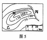 15.图 5 是某地等高线图,请你判断甲、乙、丙分别表示