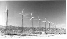37、(8分) 如图是我国西部某地区风力发电的外景。中考资源网该地区空气密度为1.3㎏/m3,一台风车的轮叶转动时可以形成面积为100m2的圆面。中考资源网下表给出了在不同风速下一台风车获得的能量。中考资源网