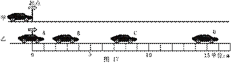 如图所示为某辆赛车启动过程的频闪照片,该赛车从赛道的起点处(车头所对的零刻度线位置)由静止开始出发,同时,照相机开始拍照(如图甲所示),以后赛车沿直线向右运动的过程中,照相机每隔0.2s曝光一次(如图乙所示).