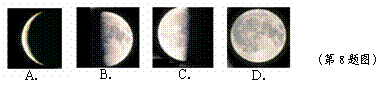 8.右图是一张日历,据此判断这一天晚上的月相是