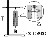 10.小玲同学把两个50克的钩码挂到弹簧秤的挂钩上(如图甲)中考资源网,图乙