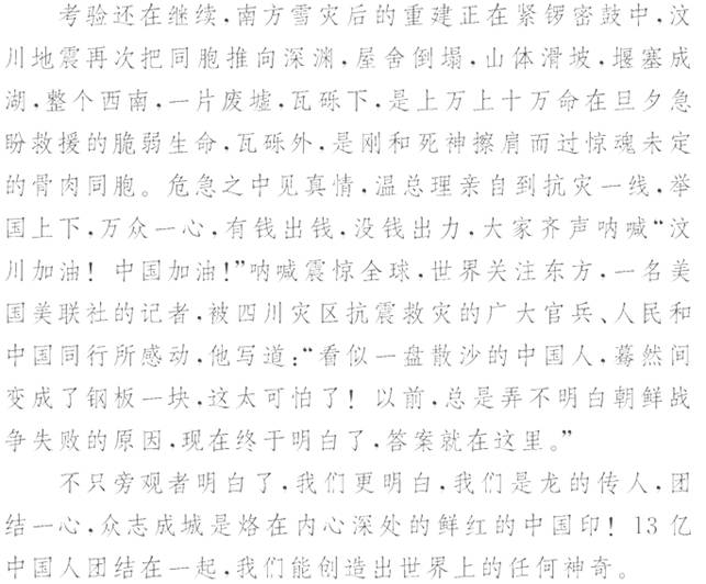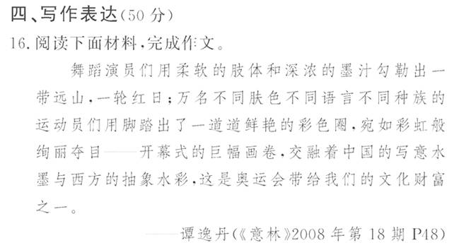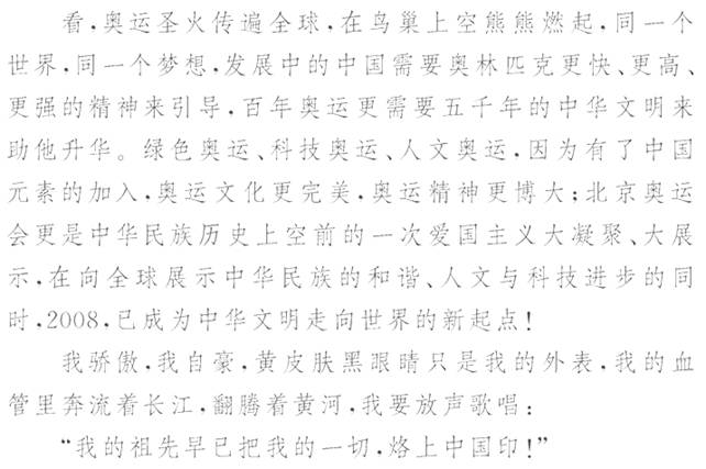 15.下图是麦当劳(中国)有限公司与北京奥组委联合发布的“麦当劳与北京2008年奥运会组合标志”。请你简介画面内容,说明其表达的意义。(5分)