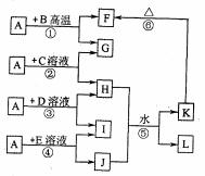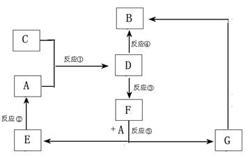 (16分)、A、B、C、D、E、F、G七种物质间存在如图所示的转化关系,其中A、B、D、G含有同种元素。