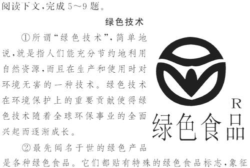 [解析]结合选文中“最先闻名于世的绿色产品是各种绿色食品。它们都贴有特殊的绿色食品标志,象征着该产品是无污染的、充满健康和活力的产品”来回答。
