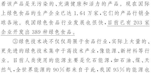 答案:通过具体的数字来说明我国绿色食品行业发展很快。