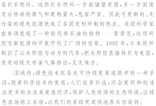 答案:目前化石燃料一方面储量有限,另一方面使用后排放的废气和废物量大,危害严重,而绿色能源能解决这两方面的问题。