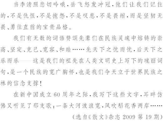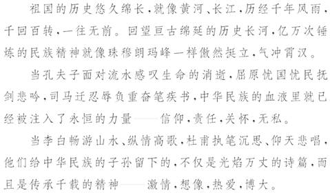 答案:赞颂先辈们在民族灵魂中熔铸的崇高、坚定、克己、宽容、和睦等精神品质。