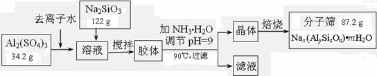 (3)假设生产流程中铝元素和硅元素均没有损耗,钠原子的利用率为10%,试通过计算确定该分子筛的化学式(写出计算过程)。