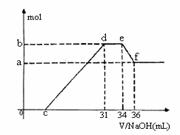 (4)现有一定量C、E混合物与稀HNO3充分反应,反应过程中无任何气体放出。在反应结束后的溶液中,逐滴加入4mol /L NaOH溶液,所加NaOH溶液的体积(mL)与产生沉淀的物质的量(mol)关系如上图所示。坐标图c点溶液中溶质除C和E的硝酸盐外,还含有的溶质是___________________________,其对应物质的量为