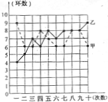 射击集训队在一个月的集训中,对甲、乙两名运动员进行了10次测试,成绩如图所示: