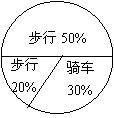 (3)在扇形统计图中,求骑车人数所占的圆心角度数。