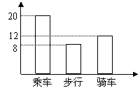19、(8分)右图是某班学生外出乘车、步行、骑车的人数分布直方图和扇形分布图。