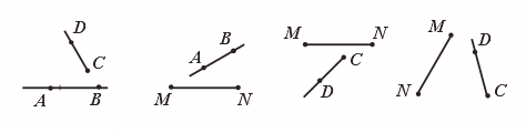 2.下列四组图形(其中AB是直线,CD是射线,MN是线段)中,能相交的一组是( )