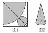 6. 如图1,在正方形纸片上剪下一个圆形和一个扇形,使之恰好围成图2所示的圆锥模型,则圆的半径r与扇形的半径R之间的关系为( )