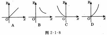 4.如图2-l-8所示,正方形的面积y与边长x之间的函数关系的大致图象是( )、