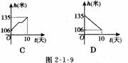5.三峡工程在6月l日至6月10日下闸蓄水期间,水库水位由106米升至135米,高峡平湖初现人间,假设水库水位匀速上升,那么图2-l-8中,能正确反映这10天水位 h(米)随时间t(天)变化的是( )