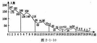 6.2003年春季,我国部分地区SARS流行,党和政府采取果断措施,防治结合,很快使病情得到控制.图2-l-10是某同学记载的5月1日到30日每天全国的SARS新增确诊病例数据图.将图中记载的数据每5天作为一组,从左至右分为第一组至第六