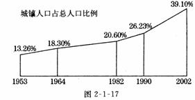 13 城镇人口占总人口比例的大小表示城镇化水平的高低,由图2-l-17的统计图可知,我国城镇化水平提高最快的时期是___________.